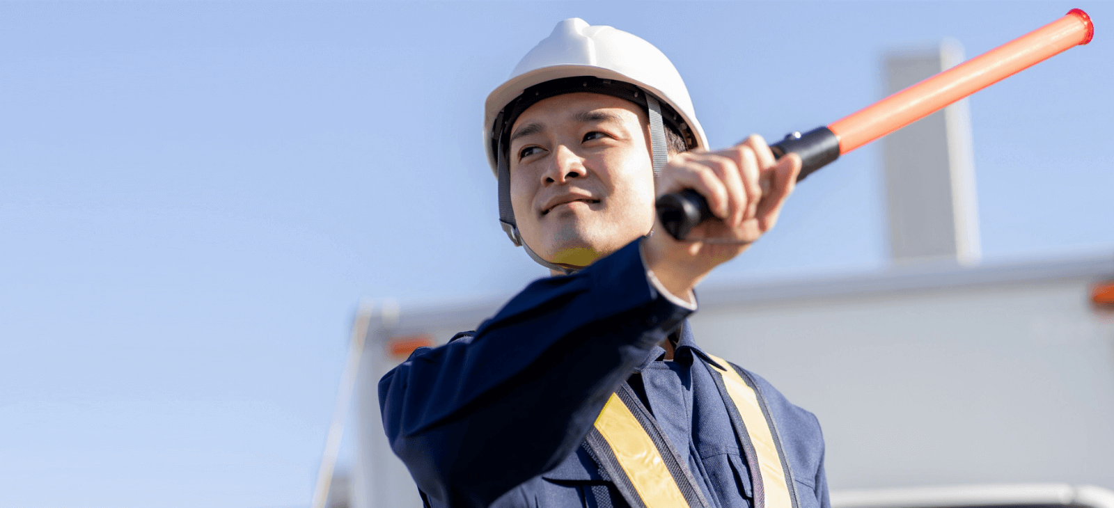 道路工事等の現場において、交通渋滞や事故の発生を防ぐために通行人や車両を誘導します。
